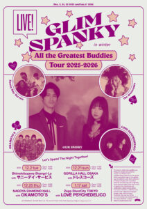 12/2 GLIM SPANKY – All the Greatest Buddies Tour 2025-2026 / 下北沢シャングリラ 東京 https://www.glimspanky.com/live/%E3%80%90%E6%9D%B1%E5%90%8D%E9%98%AA%E3%80%91%E3%80%8Call-the-greatest-buddies-tour-2025-2026%E3%80%8D/